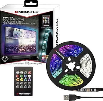 Monster 6 5 Ft Multi Color Sound Reactive Led Light Strip Smooth Fit To Any Space Tvs Computers Kitchens Bedrooms Customizable Settings Remote Control Usb Powered Easy Diy Installation Tools Home Improvement Amazon Com